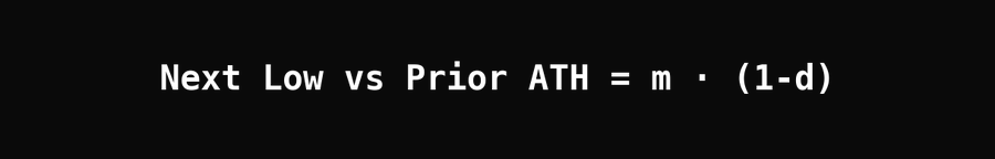 Tiếng Anh đơn giản: đáy chu kỳ tiếp theo so với ATH trước đó bằng mức tăng của đỉnh nhân với phần còn lại sau drawdown.