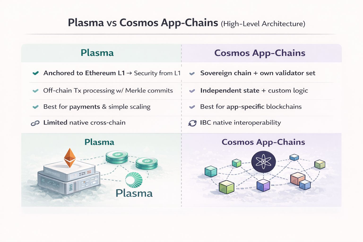 @Plasma xuất hiện trong đầu mình ở thời điểm đó. Và câu hỏi bật ra khá tự nhiên: liệu Plasma có đang cạnh tranh trực tiếp với Cosmos app-chain không?