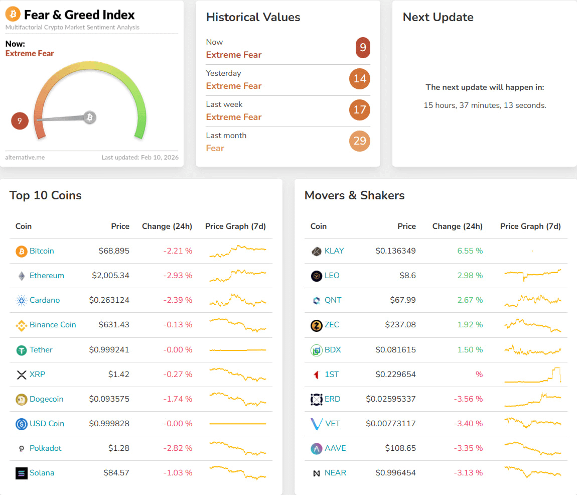 • Chỉ số sợ hãi và tham lam: 9 (nỗi sợ cực độ) — hoảng loạn ở mức năm 2022, các nhà đầu tư trong tình trạng tuyệt vọng.