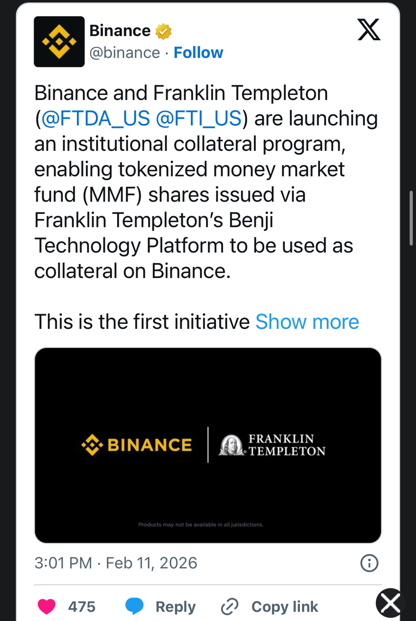 Binance và Franklin Templeton Mang Tài sản Đảm bảo Quỹ Được Mã Hóa đến Các Tổ Chức