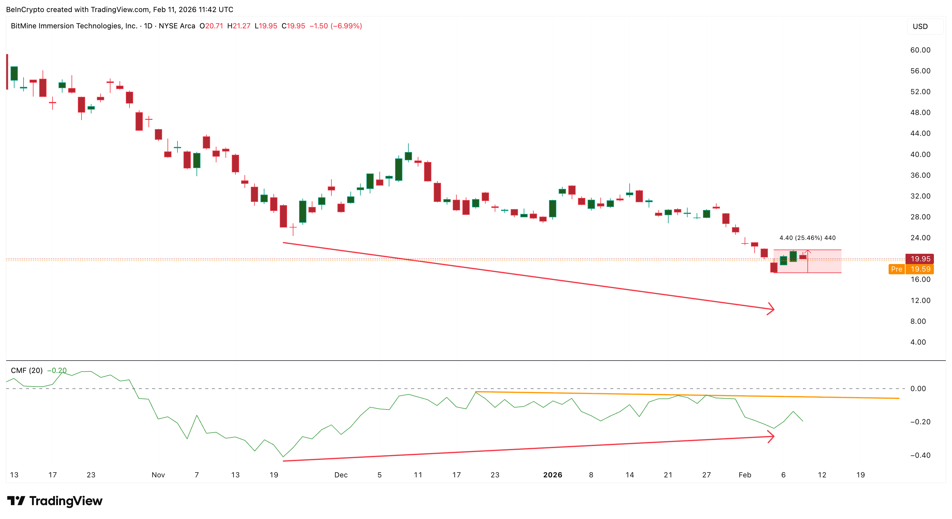 Chỉ khi giá vượt qua mức 21 đô la, cấu trúc ngắn hạn mới bắt đầu cải thiện. Để tiếp tục tăng lên mức 26 đô la, cần có giá Ethereum mạnh hơn và nhu cầu vốn lớn hơn. Hiện tại, cả hai yếu tố này đều chưa chắc chắn. Chừng nào ETH còn giao dịch thấp hơn nhiều so với giá vốn của BitMine và dòng tiền suy yếu, các đợt phục hồi có thể sẽ gặp phải lực bán mạnh.