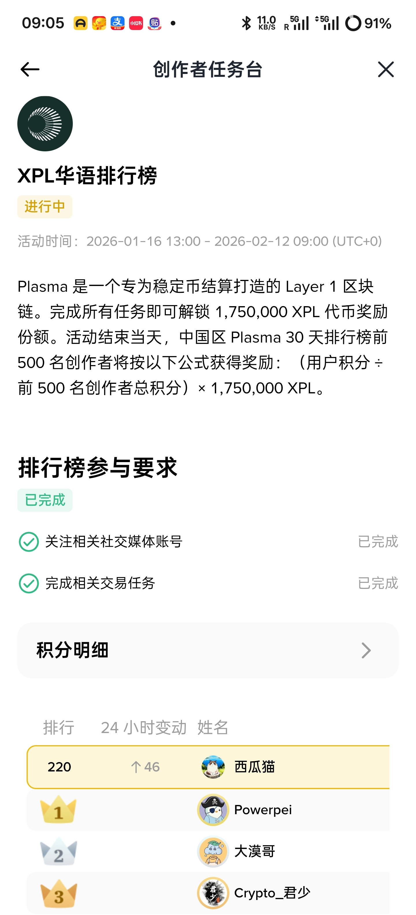 这次#Plasma 的币安创作者任务到今天就正式结束了。