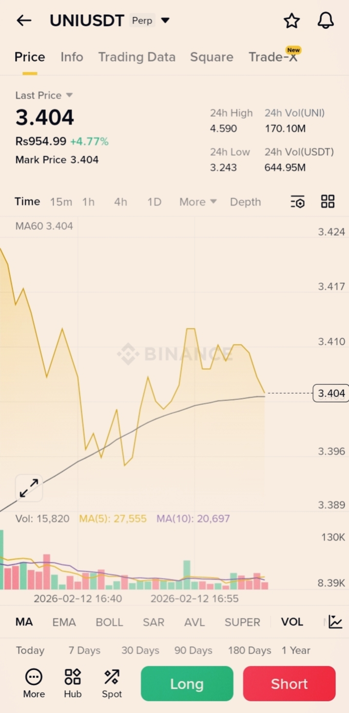 UNI attempting to stabilize after recent volatility, currently trading around the MA60. Volume is improving, but bulls need a strong reclaim of resistance for trend continuation. Until then, expect cautious price action and range play.