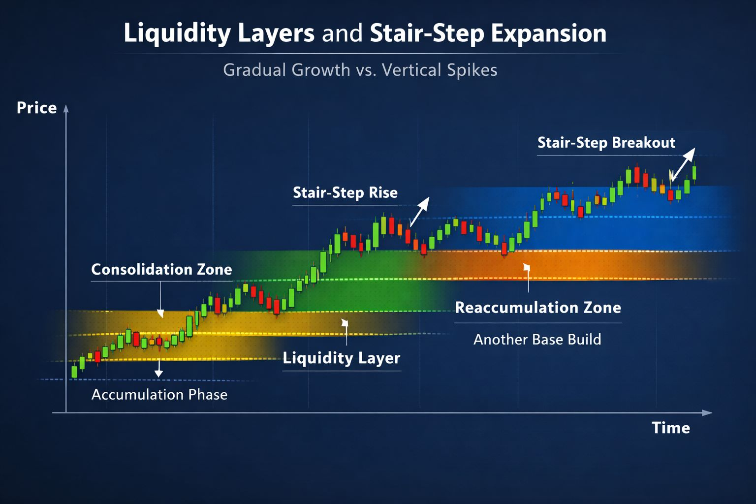 2️⃣ Liquidity Layers and Stair-Step Expansion