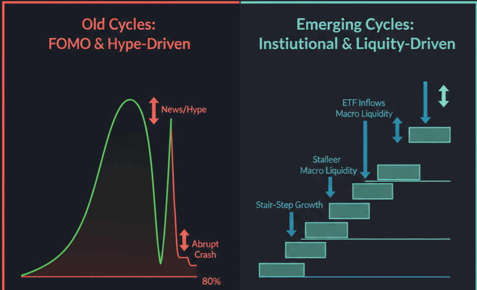 Crypto is no longer purely speculative. Market infrastructure, ETFs, institutional flows, and derivatives dynamics have introduced predictability into previously chaotic cycles.