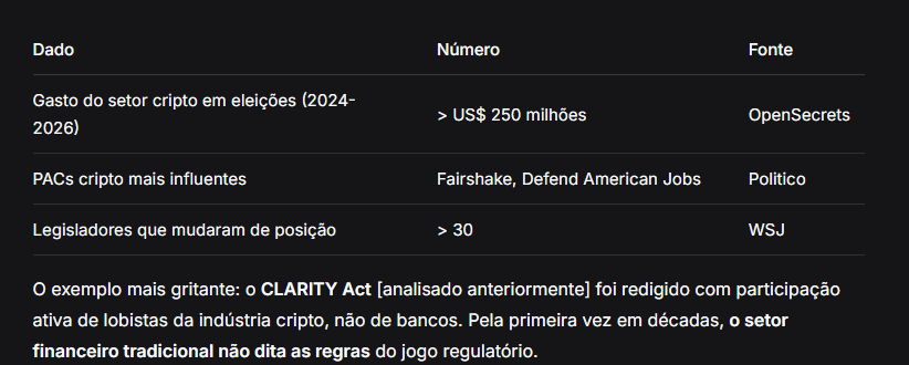 3.2. O Que Mudou: A Ascensão do Cripto-Lobby
