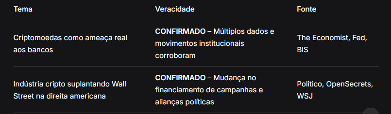 Tema: A ascensão da indústria cripto como força política e a ameaça existencial ao modelo bancário tradicional