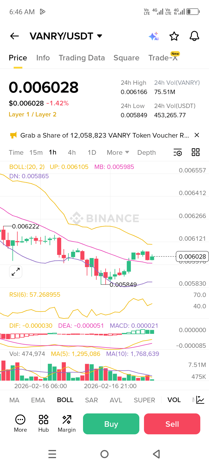 Rebound Within a Downtrend: RSI near 69.9 suggests an overbought relief bounce, while MACD is improving but remains below the zero line, indicating recovery without trend reversal. A Bollinger Band squeeze points to an imminent volatility expansion, with EMA 99 resistance at $0.00618 acting as a key ceiling.