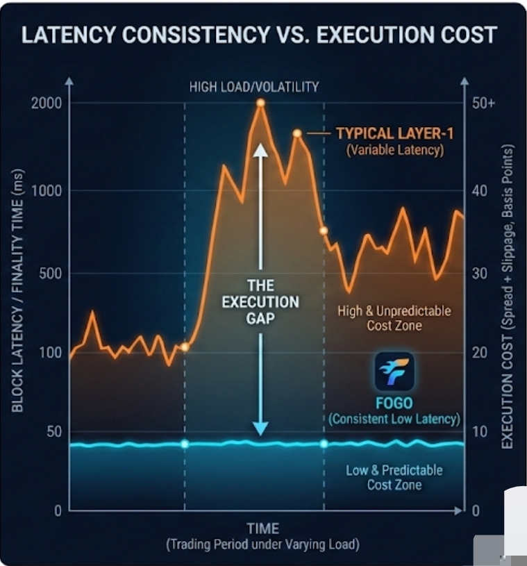 The difference Fogo is aiming at is latency consistency. Not just fast blocks, but predictable finality. In trading, predictability is as important as raw speed. A system that sometimes confirms in 50ms and sometimes in 2 seconds is hard to price around. If Fogo can hold block production steady at sub-100ms under load, market makers can model that risk more cleanly. That steadiness becomes part of the foundation.