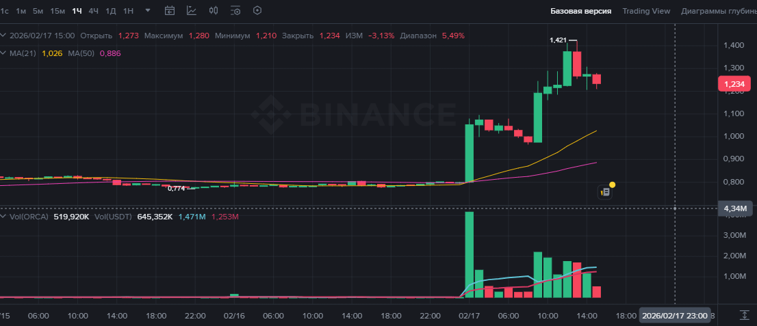 Резкий импульс на повышенных объёмах — явный памп с последующей фиксацией прибыли.