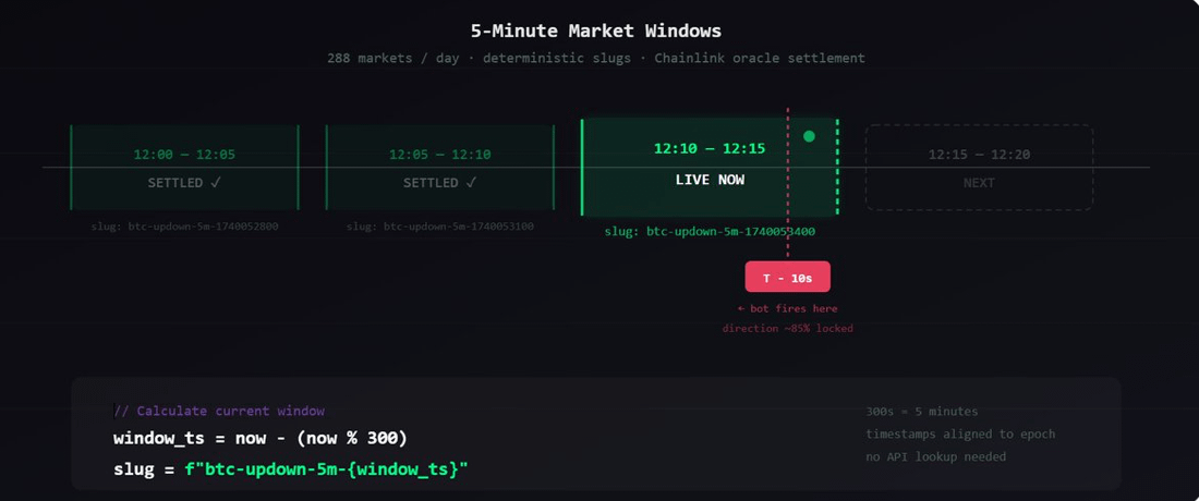 Hiện tại, chiến lược xác thực có hiệu quả là: trong 10 giây trước khi cửa sổ kết thúc, hướng đi của BTC đã được xác định khoảng 85%, nhưng tỷ lệ Polymarket vẫn chưa hoàn toàn phản ánh thông tin này.