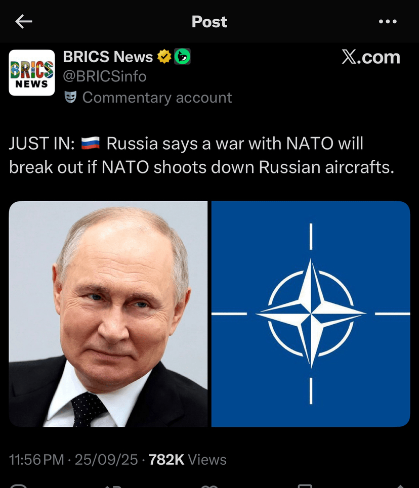 🇷🇺 Nga nói rằng một cuộc chiến với NATO sẽ bùng nổ nếu NATO bắn hạ máy bay của Nga.