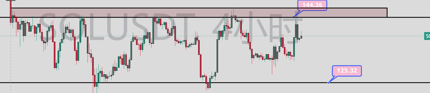 1.多次触碰没有突破的地方比如sol,多次触碰144这个位置没有突破,这里就是很好的阻力位置。如果是我要做空肯定是越接近这个位置去做空越安全。