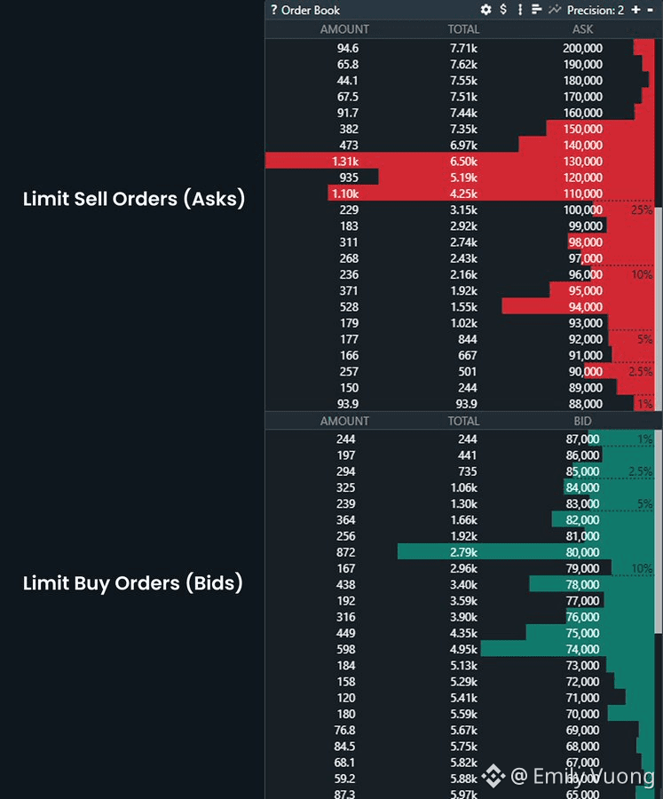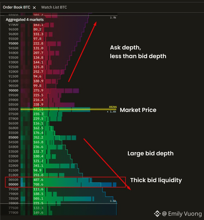 📌 Order book không phải là câu trả lời khẳng định rằng giá sẽ đi về đâu mà chỉ đơn giản là “Thanh khoản đang nằm ở đâu, dày mỏng thế nào?”