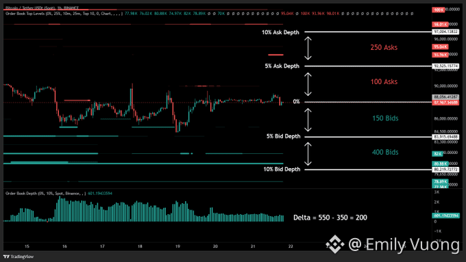 📌 Depth delta so sánh tổng bid và tổng ask trong một vùng % quanh giá hiện tại.