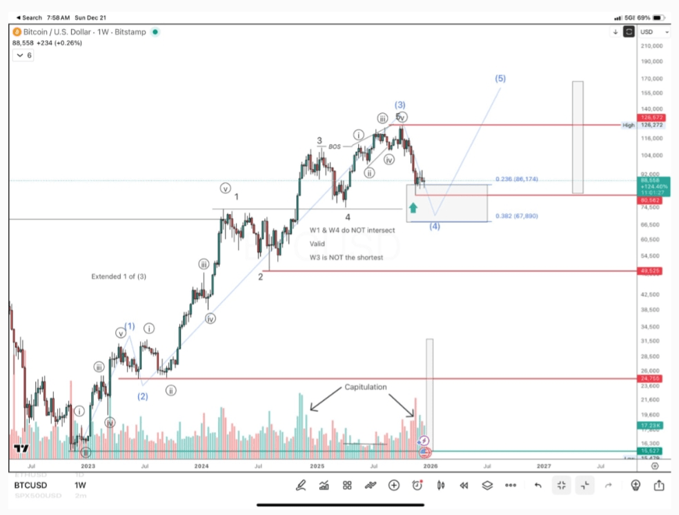 Sử dụng Lý Thuyết Sóng Elliott, Korinek_Trades gợi ý rằng BTC đang hình thành Sóng 5 cuối cùng (W5), điều này có thể đẩy giá lên mức ATH mới và có khả năng mở rộng về phía $150,000 trước khi chu kỳ kết thúc.