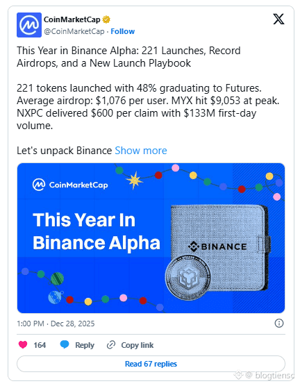 Theo CoinMarketCap, Binance Alpha đã khép lại năm 2025 với vai trò là một nền tảng tiếp cận sớm hàng đầu sau khi ra mắt 221 token. Hoạt động này diễn ra trên toàn bộ hệ sinh thái của Binance trong suốt năm, thu hút hàng triệu người dùng. Kết quả cho thấy Alpha đã định hình lại cách thức khám phá token, airdrop và giao dịch sớm thông qua việc nâng cấp nền tảng một cách đồng bộ.