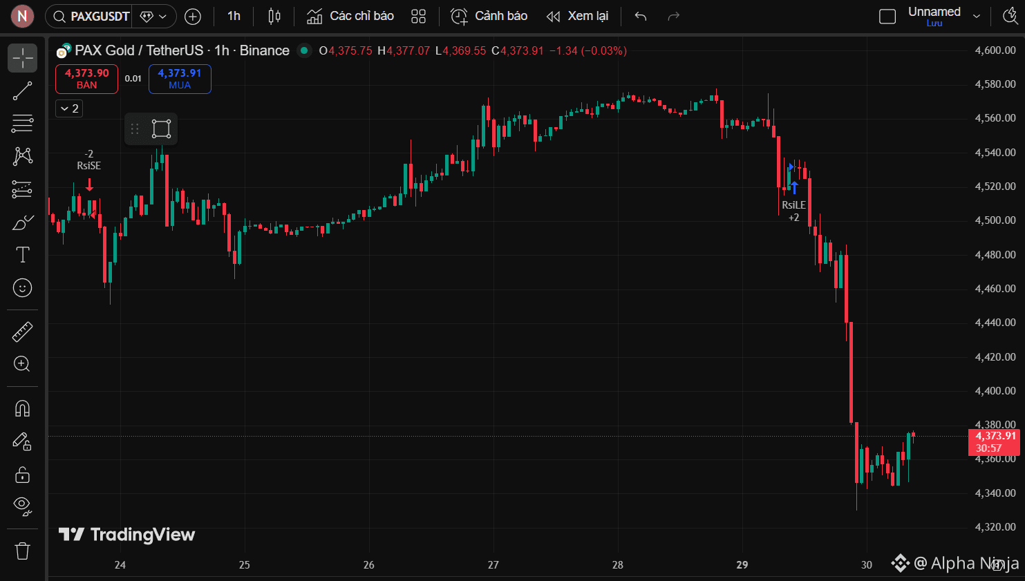 $PAXG sau giai đoạn neo giá cao đang phải đối mặt với một đợt rút vốn quy mô lớn để chốt lời cuối năm. Cú rơi từ vùng 4,580 USD về sát 4,370 USD không đơn thuần là kỹ thuật, mà là sự thay đổi vị thế của các tổ chức lớn để rũ bỏ lượng người chơi thiếu kinh nghiệm. Đây là quá trình thanh lọc tàn bạo để chuẩn bị cho một vòng quay mới vào năm sau. Khi tất cả bắt đầu rời bỏ vì tuyệt vọng, đó mới là lúc thị trường thiết lập lại điểm cân bằng thực sự.