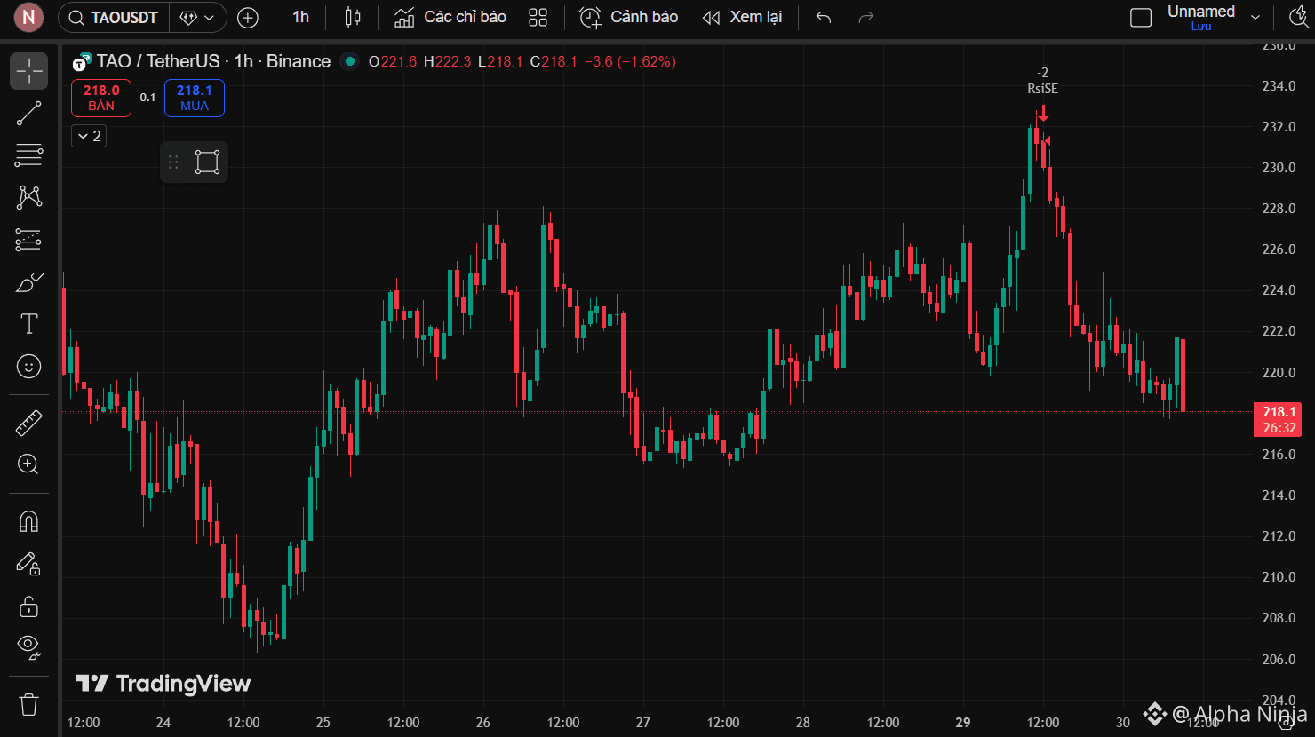 Sau khi thiết lập vùng đáy tạm thời quanh $218, $TAO đang hình thành cấu trúc lò xo bị nén chặt sau pha điều chỉnh cần thiết từ đỉnh $232. Việc giá bắt đầu có những nến rút chân nhẹ cho thấy phe mua insider đã bắt đầu làm chủ cuộc chơi. Đây không phải là lúc để hỏi "tại sao nó giảm", mà là lúc nhìn nhận vị thế khi cấu trúc phục hồi hình chữ V đang được thai nghén. Chỉ cần một lực cầu kích hoạt, chuyến tàu này sẽ quay trở lại chinh phục các cột mốc trên $225 nhanh hơn cách nó đã rơi.