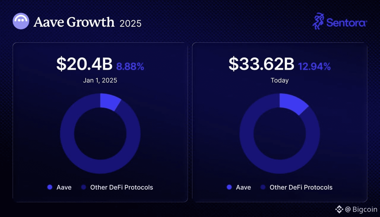 Thị phần trong DeFi cũng mở rộng rõ rệt, từ khoảng 8.9% lên gần 13%, tức là Aave đang “ăn” thêm thị phần từ các giao thức lending khác.