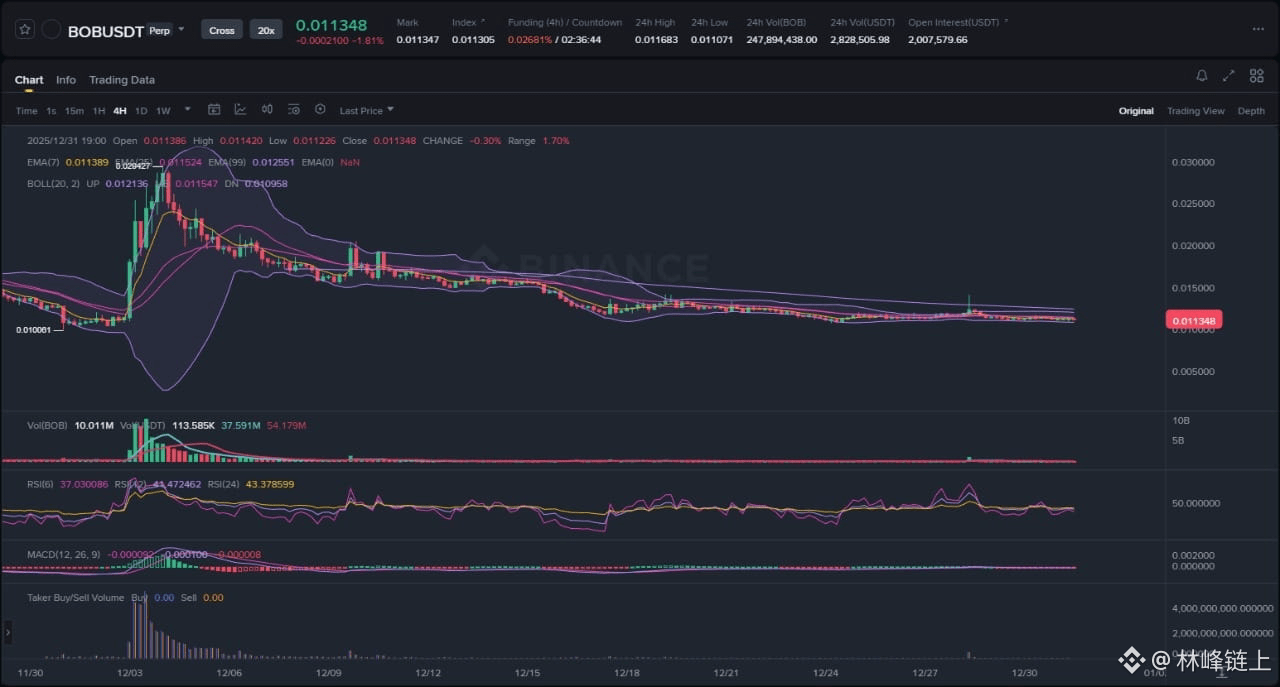An examination of the 4-hour BOBUSDT perpetual chart reveals a narrative of two distinct phases. The first phase, beginning around December 3rd, was a classic impulsive wave upward. This was characterized by a massive volatility expansion, clearly visible as the Bollinger Bands blew wide open. The move was accompanied by an immense spike in volume, confirming the authenticity of the buying pressure. This was not a gradual climb but a vertical ascent, a hallmark of a market reacting to a significant external catalyst, in this case, the Bithumb listing. This impulsive move established a local swing high, which now serves as a major psychological and technical resistance level for the foreseeable future.