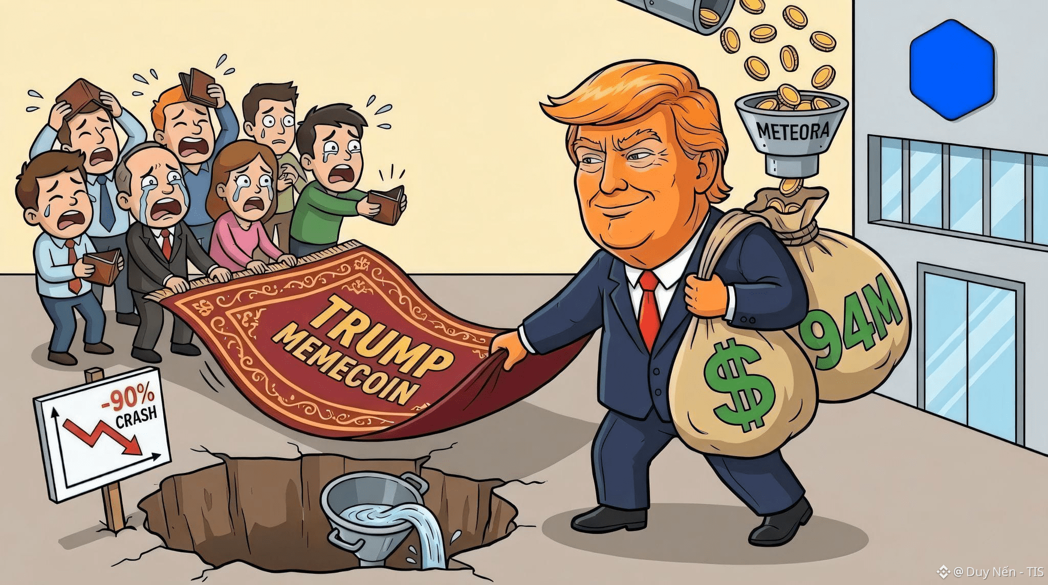 🔸Thay vì Hard Rug sập sàn ngay lập tức, đội ngũ $TRUMP đã dùng chiến thuật Soft Rug cực thâm qua Meteora DLMM trên $SOL . Họ thêm thanh khoản một chiều để hệ thống tự động xả hàng đổi lấy $USDC khi giá khớp, âm thầm tẩu tán 94 triệu USD lên Koinbass mà không làm giá sập sốc ngay lập tức.