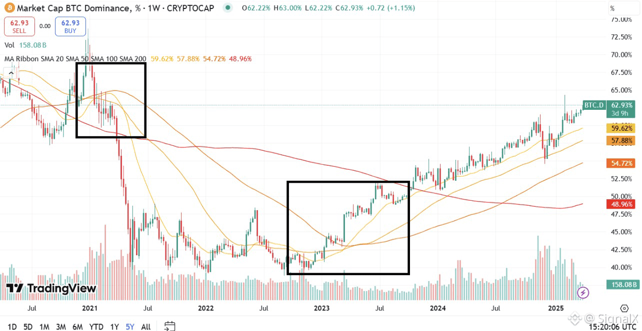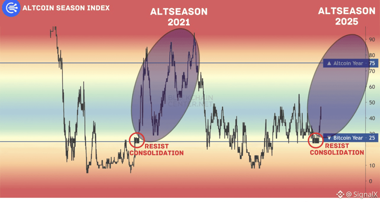 👉 BTC thường dẫn dắt thị trường, altcoin thường theo nhịp sau khi BTC xác lập xu hướng rõ ràng. Khi BTC sideway/đi ngang → altcoin biến động lớn hơn nhưng thiếu động lực dẫn dắt.