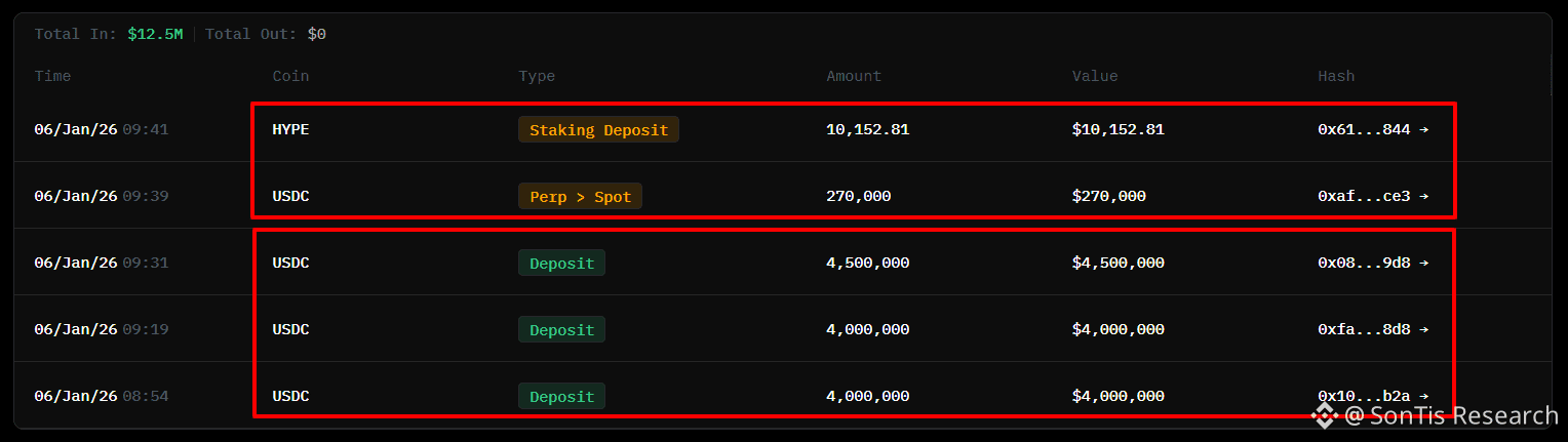 🔹Dòng tiền lớn đang bắt đầu chuyển dịch mạnh mẽ vào hệ sinh thái khi một whale vừa nạp 12,5 triệu USDC để thực hiện chuỗi lệnh mua gom và đặt cược cực lớn