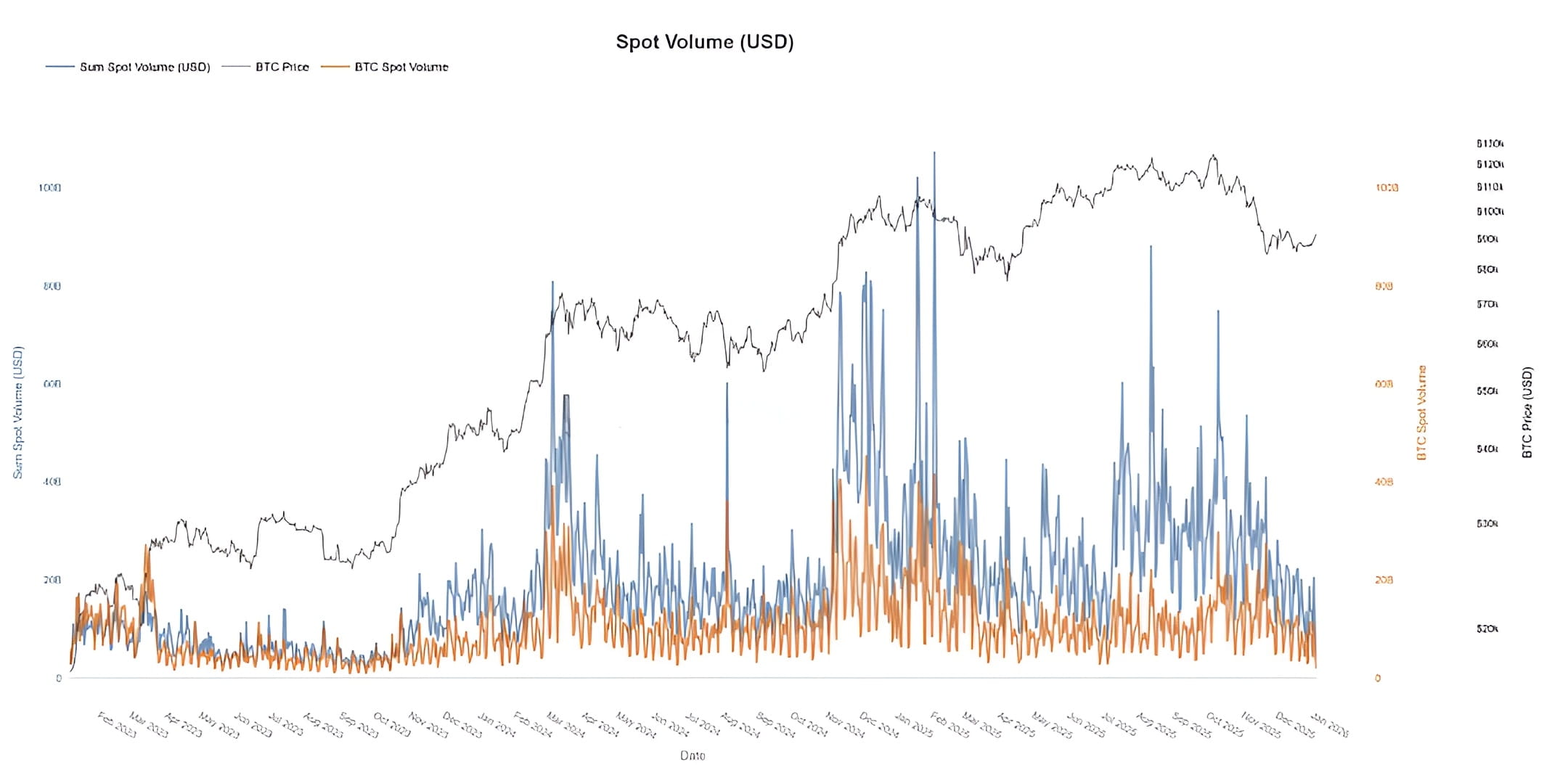 🔸 Thị trường vẫn đang chịu ảnh hưởng từ chứng trầm cảm sau chấn thương (PTSD) do sự kiện thanh lý hàng tỷ đô la vào tháng 10 năm 2025. Độ sâu thị trường đã bị phá hủy hoàn toàn trong đợt sụp đổ đó và đến nay vẫn chưa phục hồi đầy đủ.