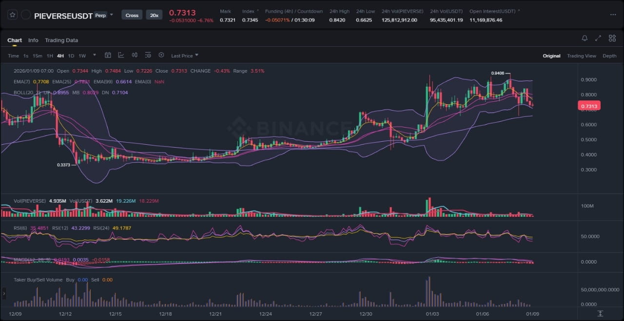 Là một nhà phân tích thị trường tiền mã hóa cấp cao, tôi đã dành nhiều năm nghiên cứu các thị trường biến động như thị trường mà PIEVERSE hoạt động, nơi những mẫu biểu đồ tinh tế có thể báo hiệu những chuyển động lớn. Với việc không có tin tức mới nào nổi bật về đồng tiền này, sự chú ý tập trung mạnh hơn vào các yếu tố kỹ thuật — cho thấy một giai đoạn tích lũy có thể là tiền đề cho một đợt bứt phá tăng giá hoặc một sự điều chỉnh sâu hơn. Phân tích này đi sâu vào những chi tiết trên biểu đồ, kết hợp các trung bình động mũ, các dải Bollinger, RSI và MACD để đưa ra các kịch bản khả dĩ cho các nhà giao dịch PIEVERSE đang đối mặt với sự bất định.