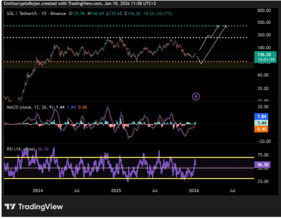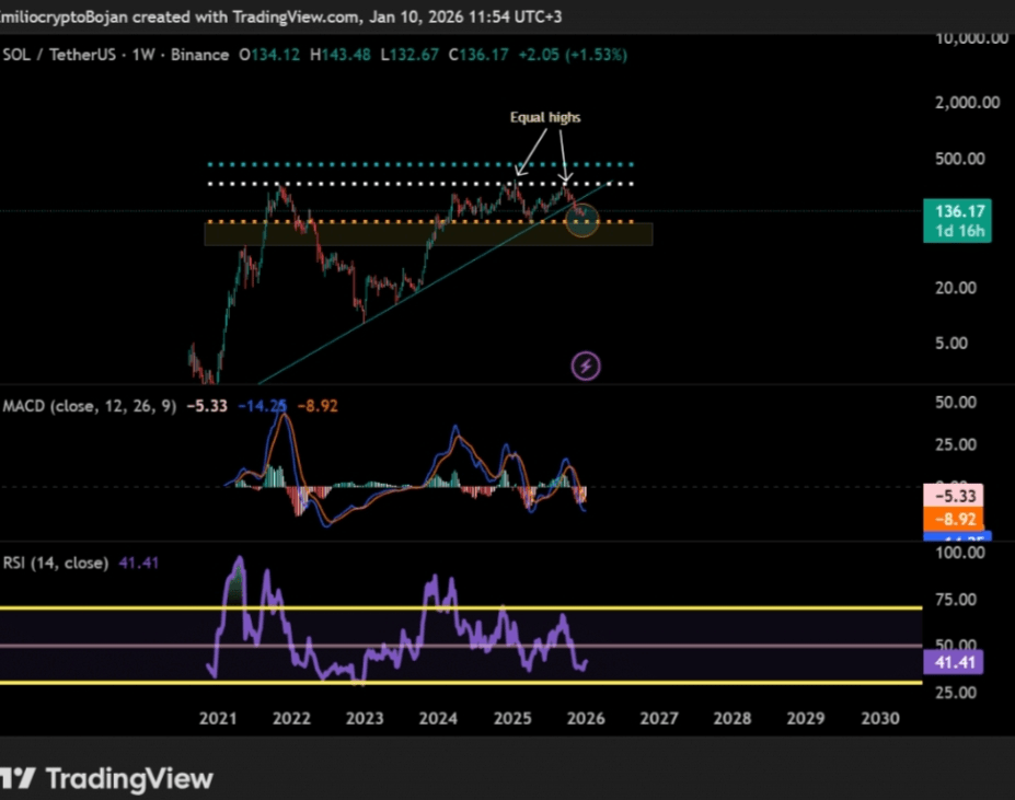 Từ góc độ kỹ thuật, SOL đã giao dịch quanh mức $136 vào ngày 10 tháng 1, nhưng các nỗ lực phục hồi gần đây dường như mong manh trước bối cảnh thị trường rủi ro đang gia tăng.
