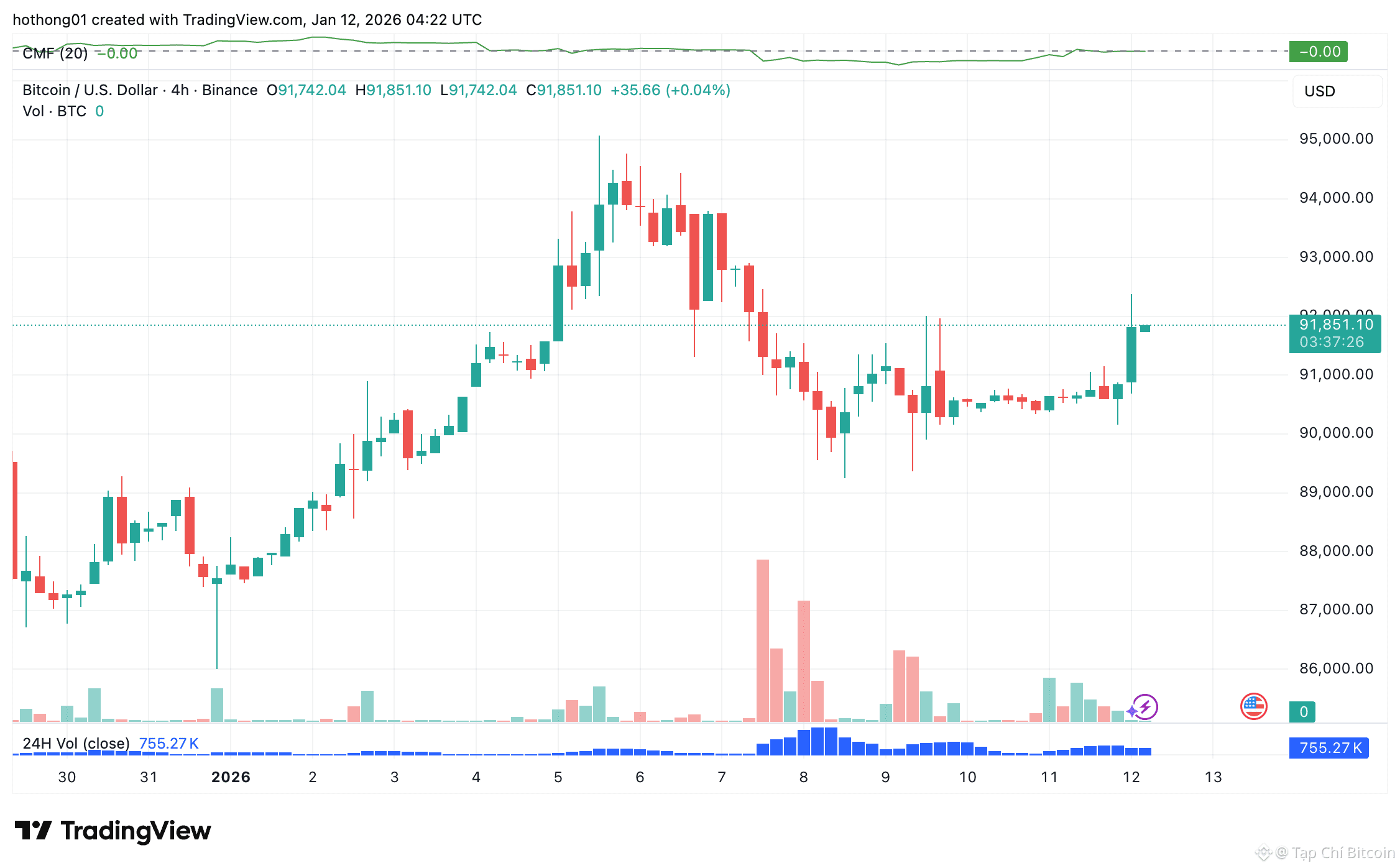 Giá BTC tăng nhẹ hôm nay | Nguồn: Tradingview