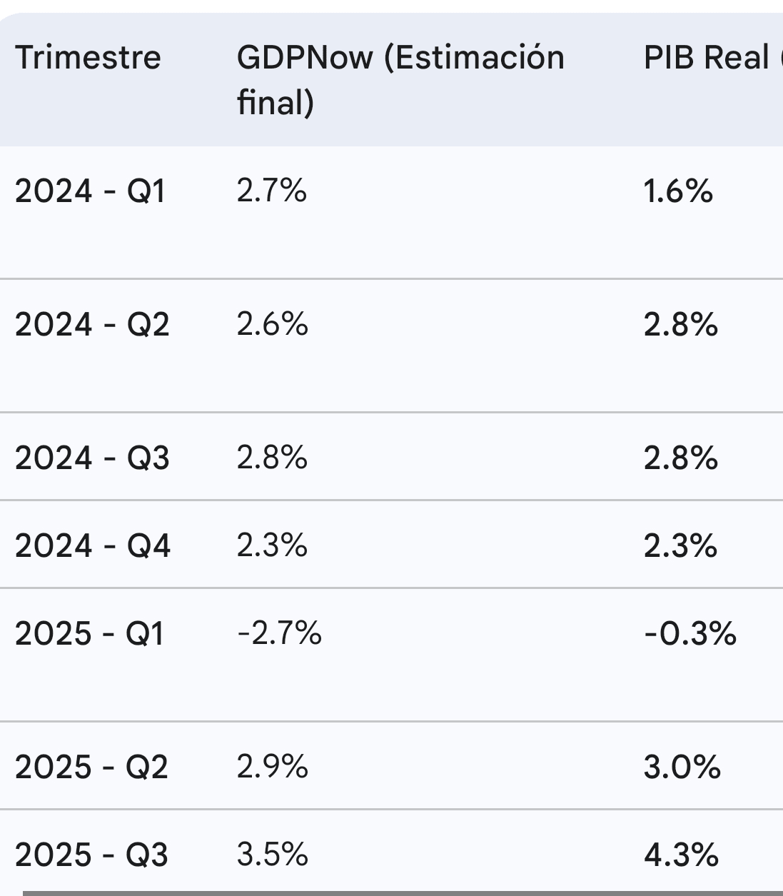 Do đó, Ngân hàng Dự trữ Liên bang Atlanta thực hiện một ước tính theo thời gian thực, GDPnow, được cập nhật khá thường xuyên khi tích hợp các dữ liệu đang có sẵn. Phương pháp tính toán tương tự như thống kê chính thức, nhưng thực hiện cập nhật "theo thời gian thực". Vì vậy, đây là một ước tính về hoạt động kinh tế hiện tại, rất hữu ích để thực hiện đầu tư.