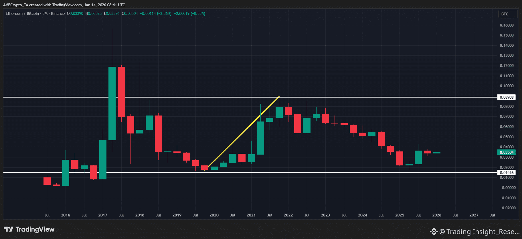 🔹 Yếu tố kỹ thuật (Mô hình hai đáy tại 0.02) và cơ bản (TPS kỷ lục, tăng trưởng RWA) đang hội tụ hoàn hảo. Nếu mô hình 2019 lặp lại, mức hồi phục 75% của tỷ giá ETH/BTC chỉ là khởi đầu cho một cú breakout lớn hơn nhiều. Thị trường đang định giá cho một cú trade "đuổi bắt" (catch-up) khổng lồ của Ethereum.