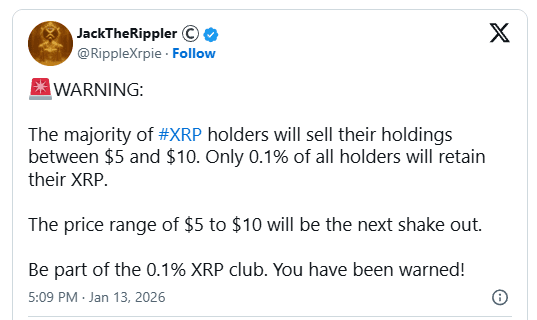 XRP Herald (@xrp_herald), một nhân vật nổi tiếng khác trong cộng đồng, đã củng cố quan điểm này, nhận xét: “$5–$10 không phải là đỉnh—đó là cái bẫy thanh khoản. Chỉ có 0,1% người nắm giữ kiên trì qua giai đoạn điều chỉnh mới nhìn thấy lợi ích thực sự.” Quan điểm này xác nhận rằng phần lớn việc bán ra có thể đến từ các nhà đầu tư ngắn hạn chứ không phải nhà đầu tư dài hạn.