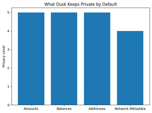 Quyền riêng tư và tuân thủ thông thường đối lập nhau, một bên che giấu thông tin, bên kia buộc phải tiết lộ. Đặc điểm độc đáo của Dusk là sử dụng các chứng minh Không biết (ZKPs) để đảm bảo vừa quyền riêng tư vừa tuân thủ cùng lúc.