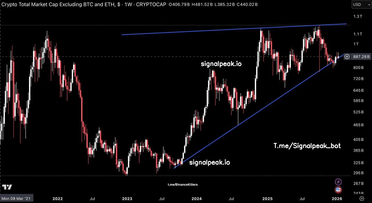 Vốn hóa thị trường altcoin tiếp tục giữ trên mức hỗ trợ tăng dài hạn, giữ cho cấu trúc rộng lớn hơn không bị thay đổi.