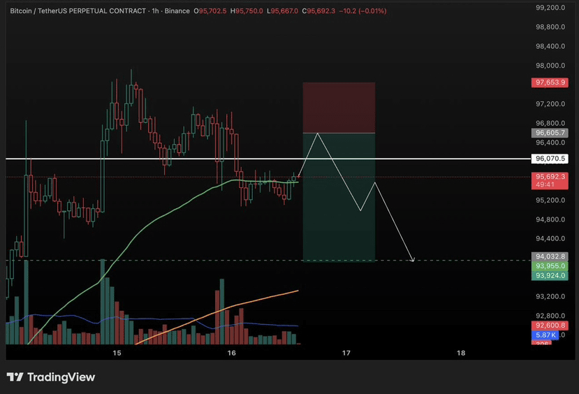 Bố cục này trông giống như một điều chỉnh kỹ thuật trong một cấu trúc lớn hơn, không phải sự suy yếu ngay lập tức, nhưng việc không tái chiếm lại 96k sẽ làm tăng áp lực giảm giá.