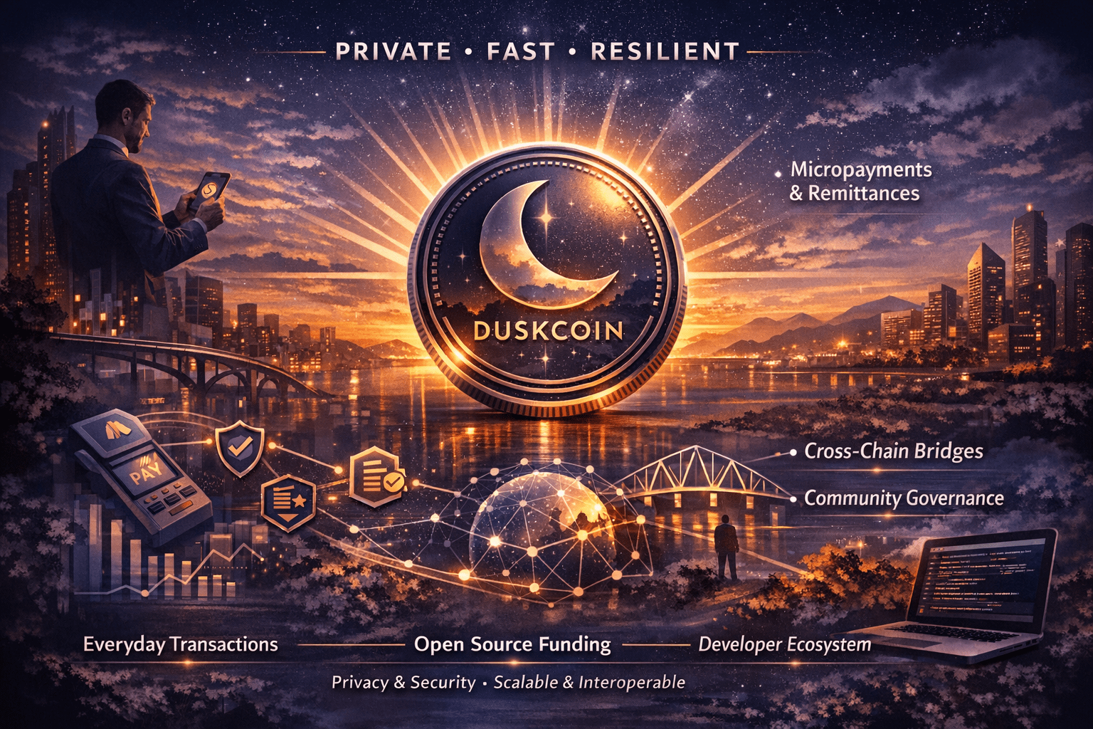 $DUSK là một loại tiền điện tử khái niệm được thiết kế để hỗ trợ các giao dịch kỹ thuật số nhanh chóng, riêng tư và hiệu quả trong cuộc sống hàng ngày. Được xây dựng xung quanh một cơ chế đồng thuận tiết kiệm năng lượng, nó cân bằng giữa khả năng mở rộng và bảo mật mà không có sự phức tạp không cần thiết. Kiến trúc mô-đun của nó cho phép thanh toán nhanh chóng giữa các đối tác, hợp đồng thông minh nhẹ và quản trị do cộng đồng điều hành. Sự riêng tư là trung tâm của tầm nhìn của DuskCoin, cung cấp các giao dịch có bảo vệ tùy chọn trong khi vẫn tương thích với các mong đợi về quy định. Hệ sinh thái nhắm đến các trường hợp sử dụng thực tiễn như thanh toán vi mô, kiều hối, tiền thưởng, và tài trợ mã nguồn mở. Bằng cách nhấn mạnh tính khả dụng, khả năng tương tác, và khả năng tiếp cận của nhà phát triển, DuskCoin trình bày một bản thiết kế chu đáo cho một loại tiền kỹ thuật số tập trung vào người dùng và bền bỉ trong một thế giới ngày càng liên kết.