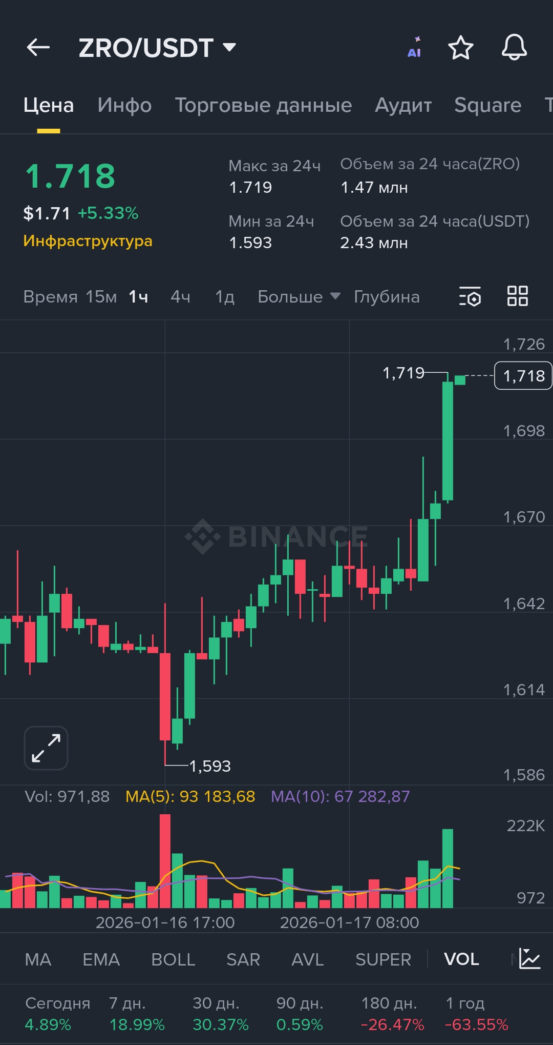 Giá ZRO/USDT dao động khoảng ~1.6💲(dữ liệu những ngày gần đây).