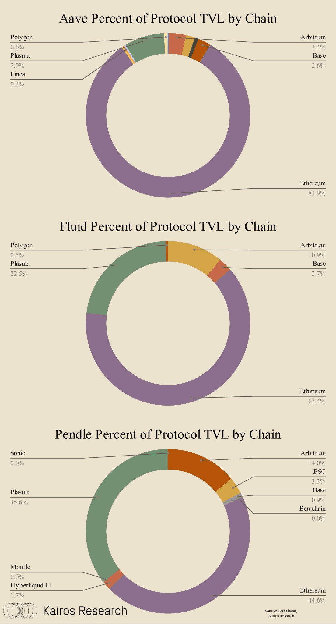 Biểu đồ ở trên cung cấp một cái nhìn rõ ràng hơn. Thay vì hỏi “Chuỗi nào có TVL cao nhất?”, nó đặt ra một câu hỏi tinh tế hơn: Tỷ lệ phần trăm của tổng thanh khoản của một giao thức sống trên mỗi chuỗi là bao nhiêu? Khi nhìn theo cách này, vai trò của Plasma trong bối cảnh DeFi trở nên thú vị hơn nhiều.