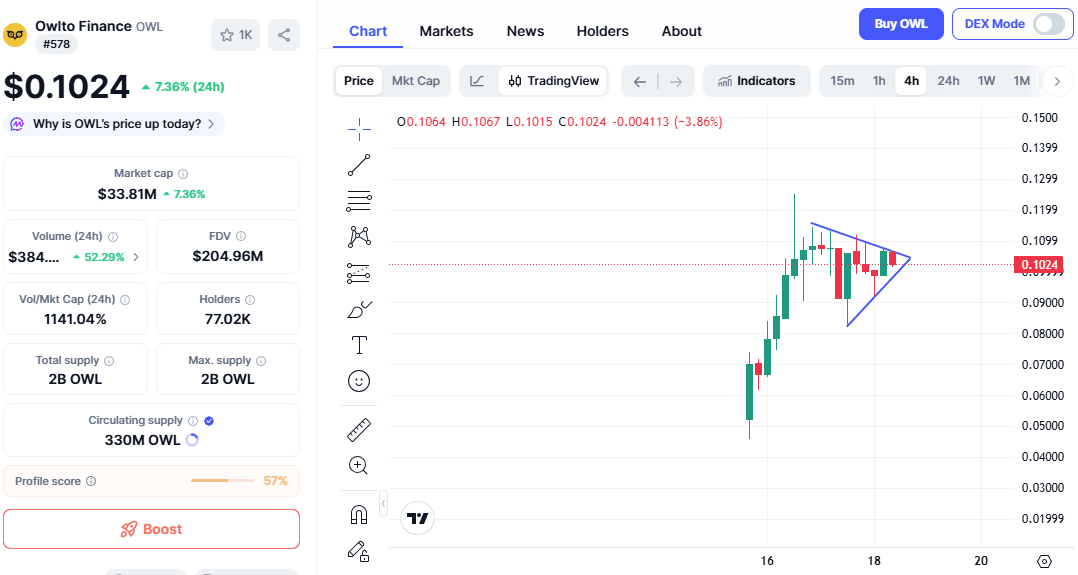 OWL ($OWL ) vừa chạm $0.12 — và động lực đang gia tăng nhanh chóng.