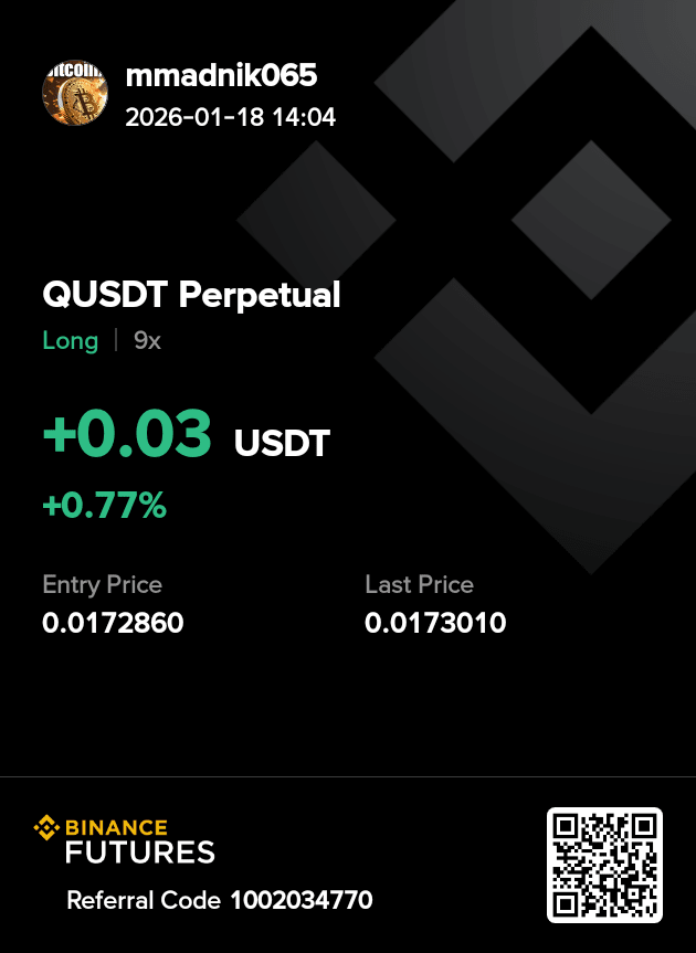 Hôm nay, tôi lại thử cùng một đồng tiền, cùng một thiết lập, nhưng lần này tôi đã kiên nhẫn. Tôi để giao dịch diễn ra, và Q cuối cùng đã tăng lên như mong đợi. Sử dụng đòn bẩy 9x, tôi đã chốt lời ở mức +4.61% ROI, 0.27 USDT. Gấp đôi lợi nhuận và cảm giác còn tốt hơn vì tôi đã tin tưởng vào thiết lập và áp dụng những bài học đã học. Bạn có thể kiểm tra chi tiết trong bức ảnh này.