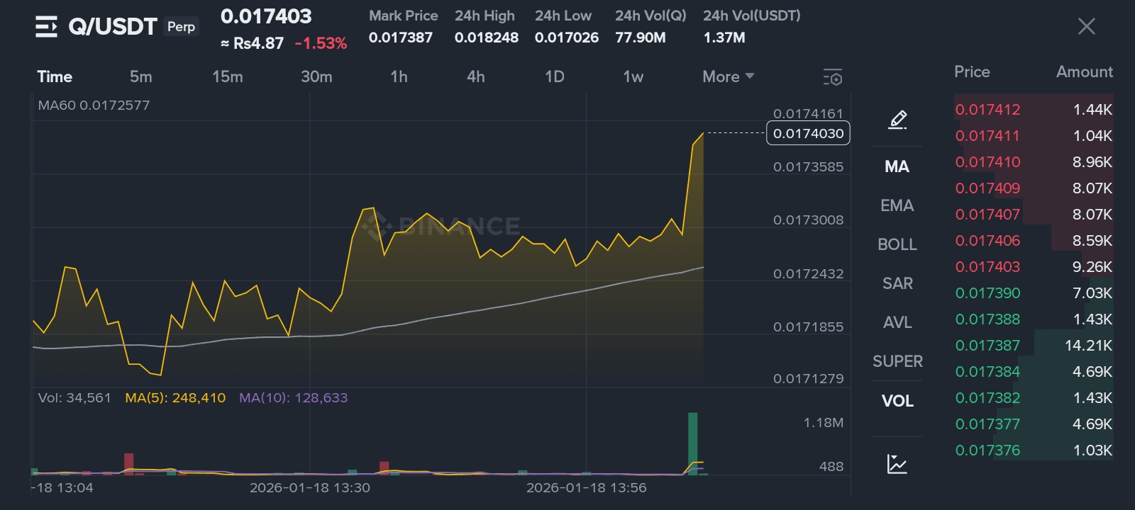Hôm qua, tôi đã phân tích hợp đồng tương lai Q (QuackAI) và nghĩ rằng giá có thể sẽ tăng vì thiết lập có vẻ hứa hẹn, vì vậy tôi đã vào lệnh mua dài.