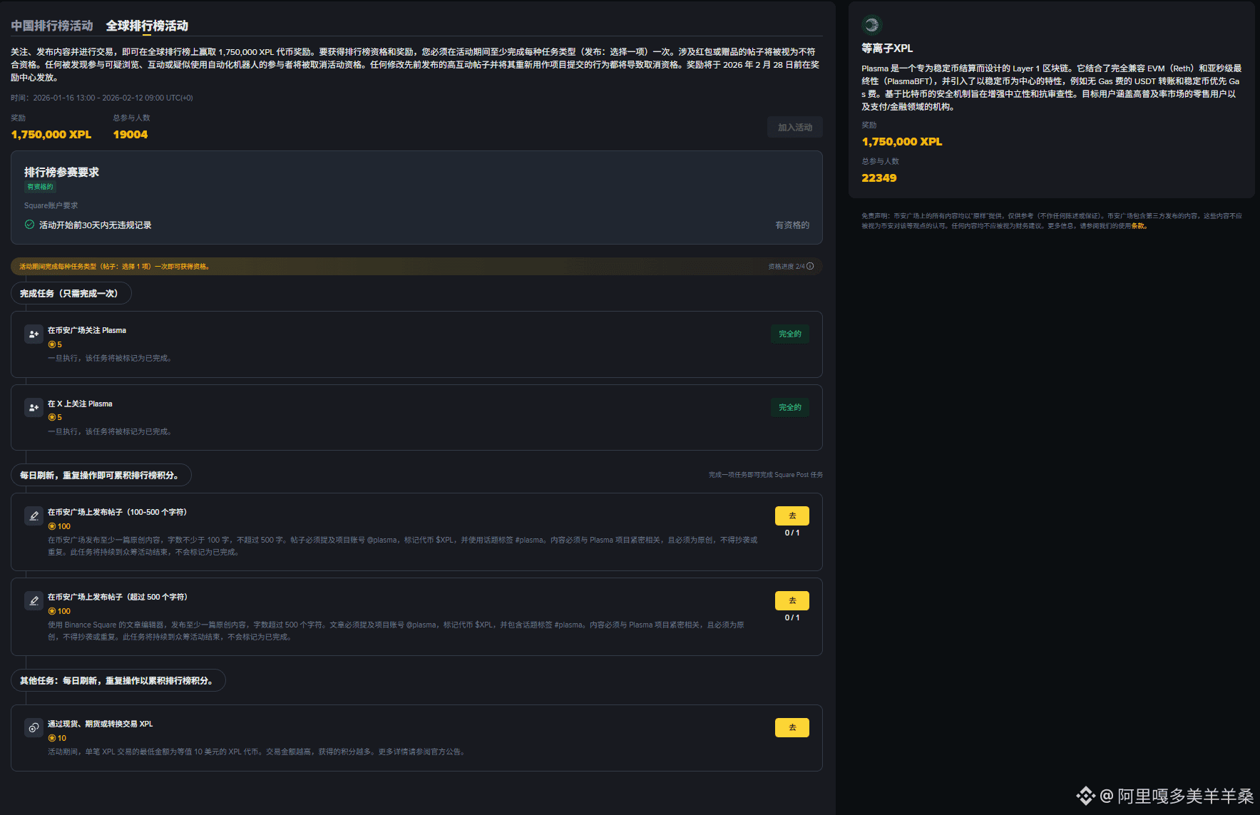 Plasma chỉ cần 3 bài nội dung mỗi ngày (2 quảng trường + 1 Twitter), nội dung có thể giống nhau, thực ra chỉ cần viết một bài mỗi ngày, sao chép vào quảng trường Binance là được.