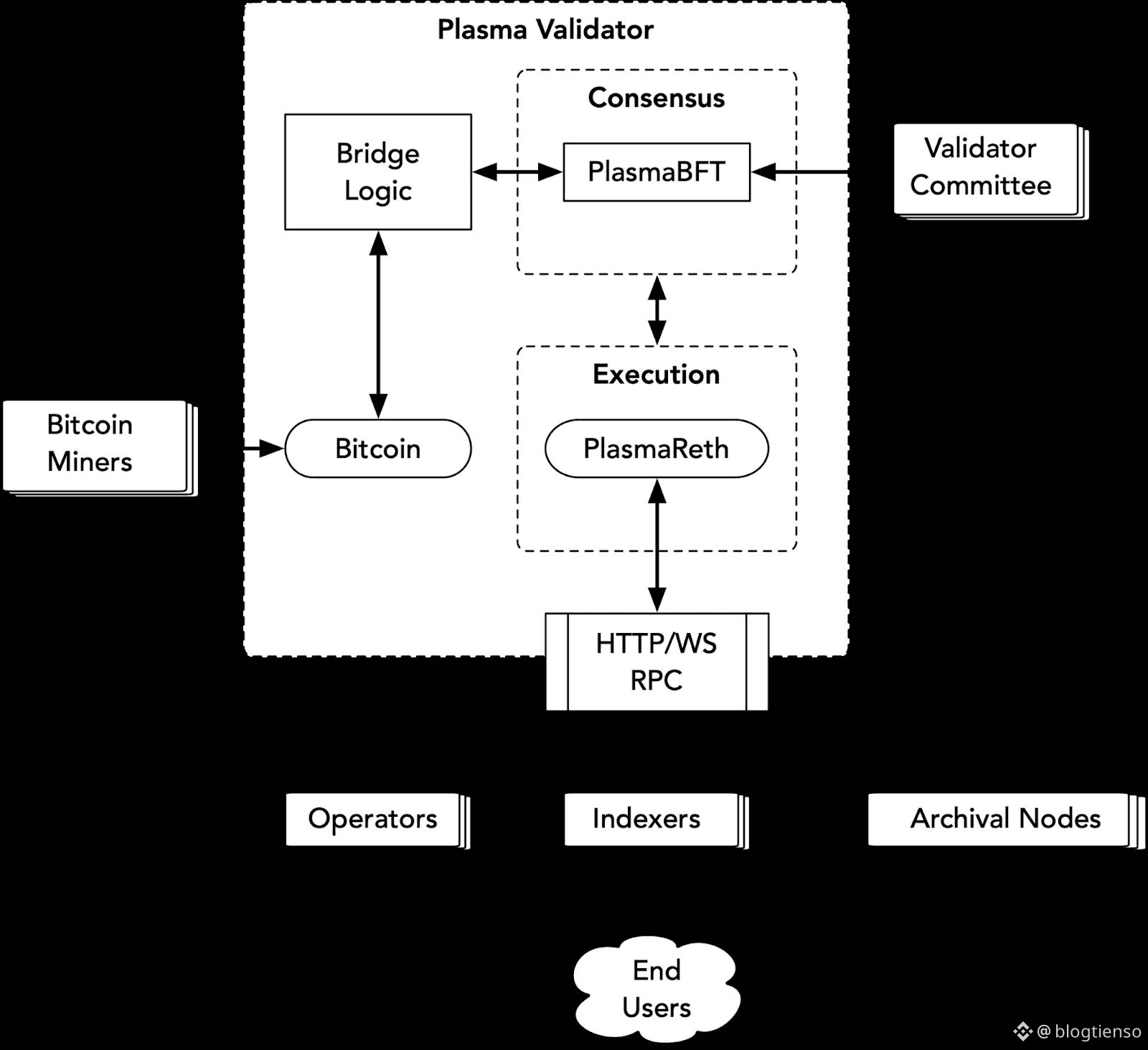 Execution Layer của Plasma được xây dựng trên Reth, một công cụ EVM hiệu suất cao viết bằng Rust, cho phép triển khai lại các ứng dụng Ethereum mà không cần sửa mã. Hệ thống đồng thuận và thực thi được thiết kế tách biệt nhưng phối hợp chặt chẽ, đảm bảo hiệu suất và khả năng mở rộng.