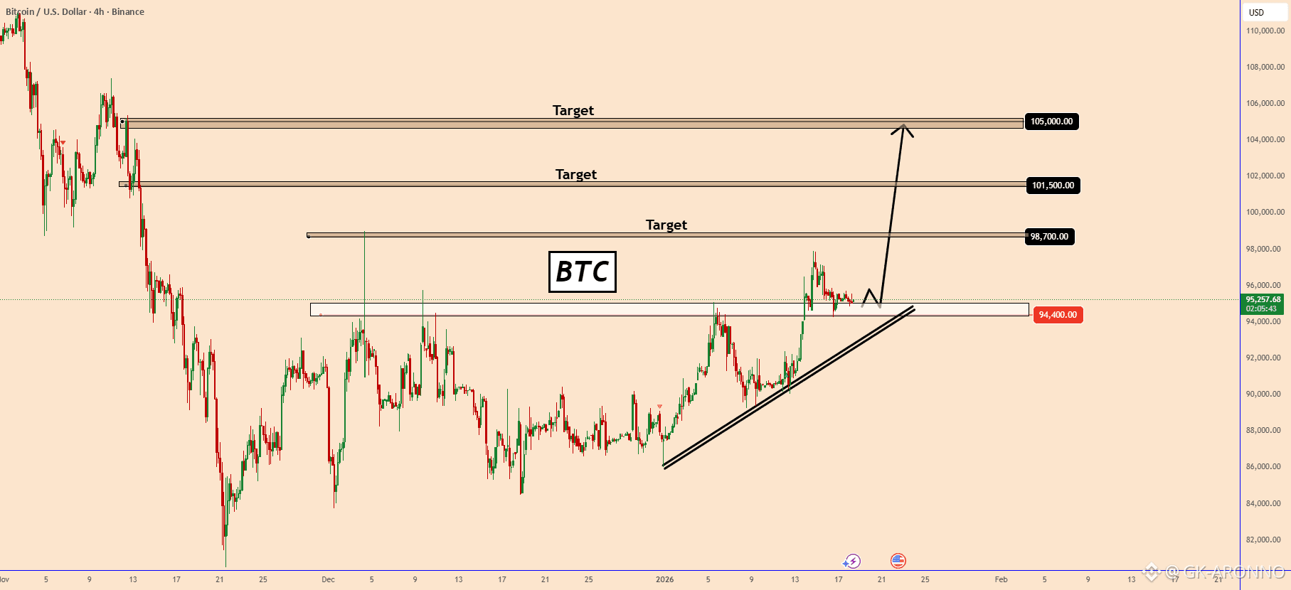 Giá đã giữ trên 94400 trong vài ngày sau khi phá vỡ, cho thấy động lực tăng giá mạnh.
