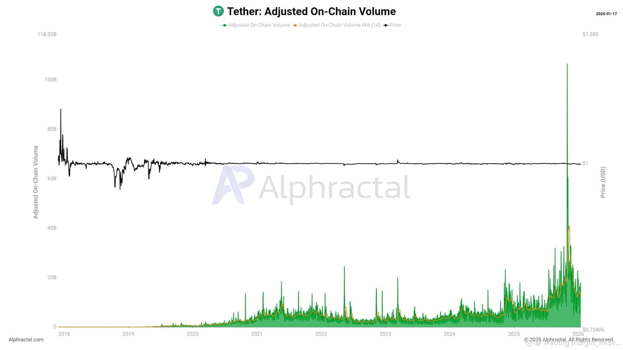 $USDT thống trị với vốn hóa 176 Tỷ USD, là lựa chọn hàng đầu cho giao dịch nhỏ lẻ và Spot toàn cầu. Tuy nhiên, hoạt động on-chain trên ETH và Tron đã giảm, với khối lượng điều chỉnh rớt xuống ~270 tỷ USD, báo hiệu khẩu vị đầu cơ của nhỏ lẻ đang nguội đi.