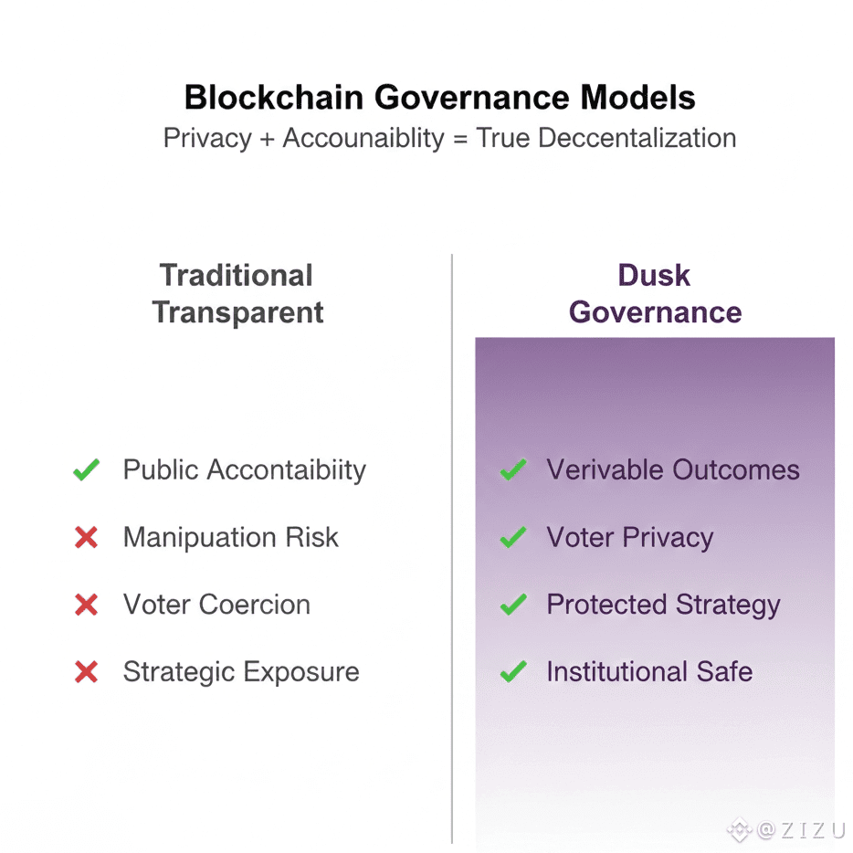 Most decentralized systems rely on full transparency for governance. Voting results, token holdings, and proposal discussions are visible to anyone. While this ensures public accountability, it can also create manipulation. Voters may feel pressured by public opinion, large stakeholders may exert undue influence, and strategic actors can game the system. Dusk Coin recognizes this problem and offers a subtle yet profound solution.