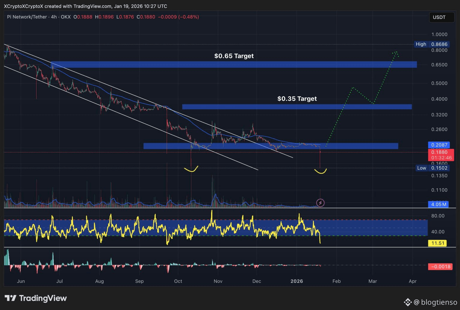 Pi Coin đã giảm 8% trong 24 giờ qua, xuống còn 0,188 đô la trong bối cảnh toàn bộ thị trường tiền điện tử giảm 2,5% ngày hôm nay.